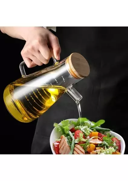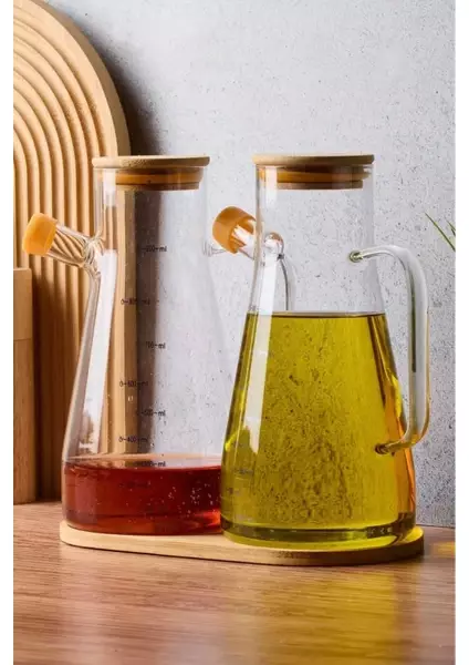 Bambu Kapaklı Vakumlu Borosilikat Cam Yağdanlık Seti, estetik görünümü ve kullanışlı yapısıyla mutfakta düzen ve şıklığı bir arada sunar.